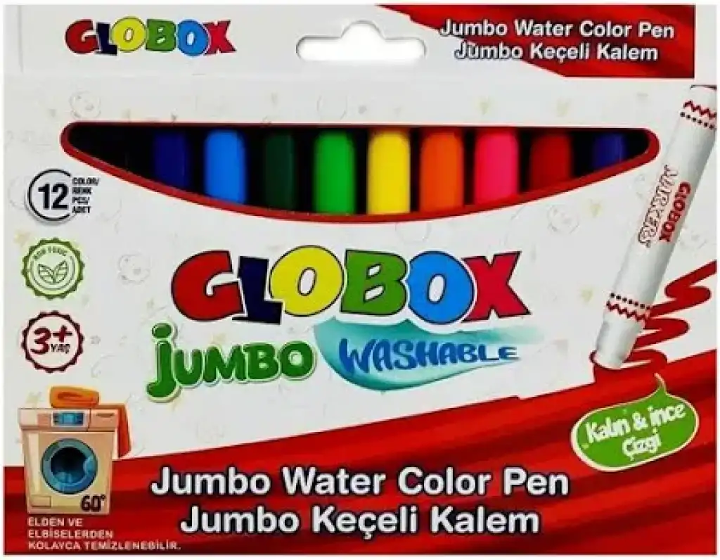 Globox 12 Renk Jumbo Yıkanabilir Keçeli Kalem