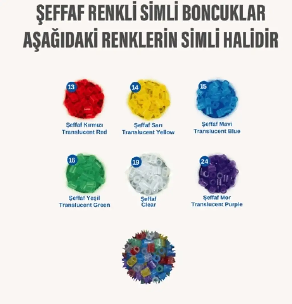 1.000 adet Hama Midi boncuk 6 renk. Renk No'ları: 13, 14, 15, 16, 19, 24