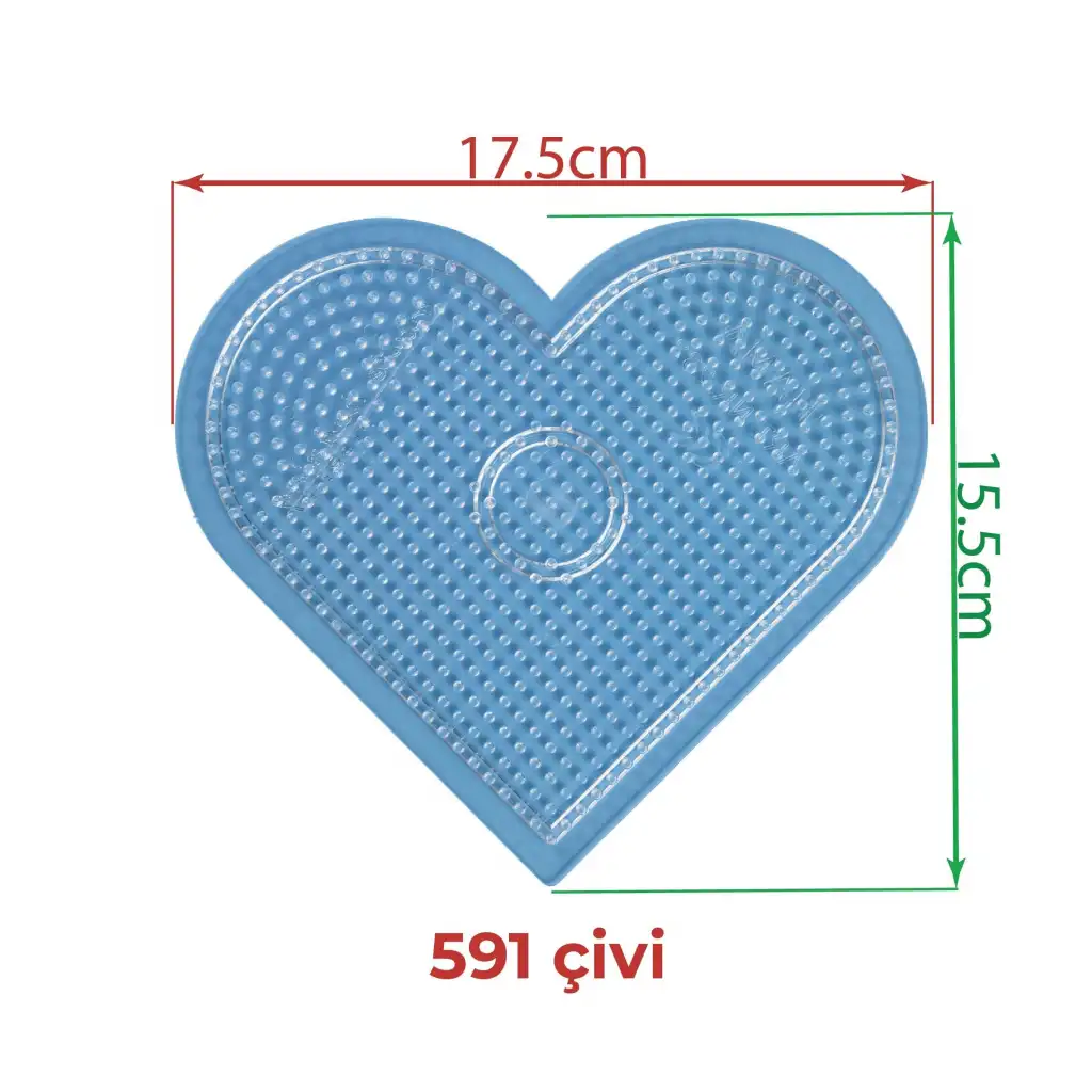 1 adet büyük kalp Hama midi boncuk dizme tablası. Tablada 591 adet çivi bulunur.
