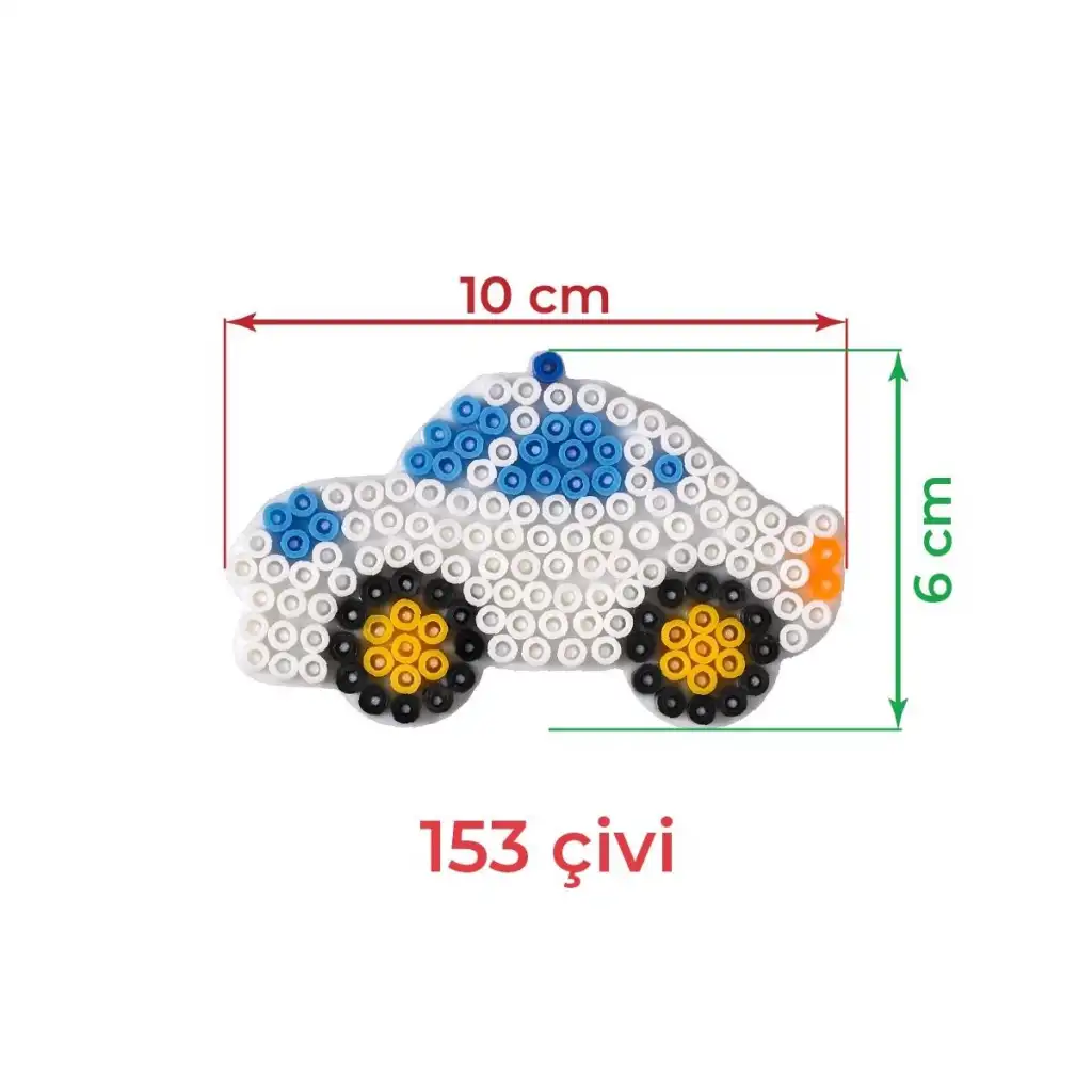 1 adet araba şeklinde Hama midi boncuk dizme tablası. Tablada 153 adet çivi bulunur.