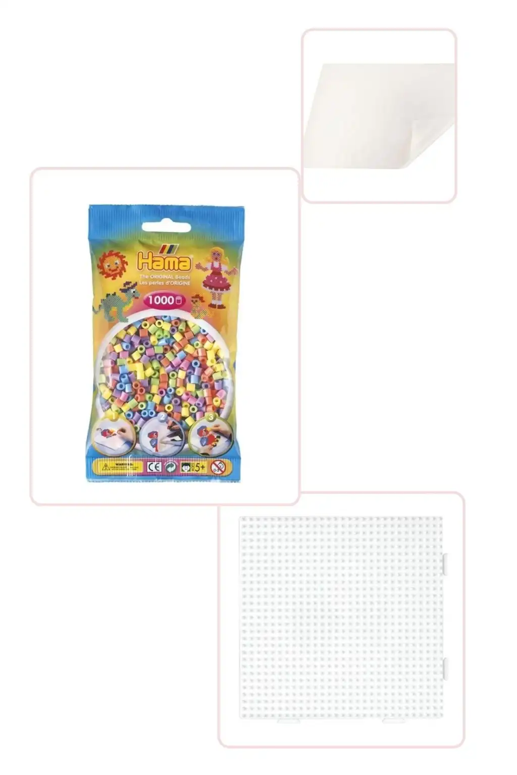Hama Midi Boncuk Pastel Renkler , 1 pakette 1000 adet boncuk, 1 adet hama midi tabla (dizme yüzeyi) ve ütüleme için 1 adet yağlı kağıt