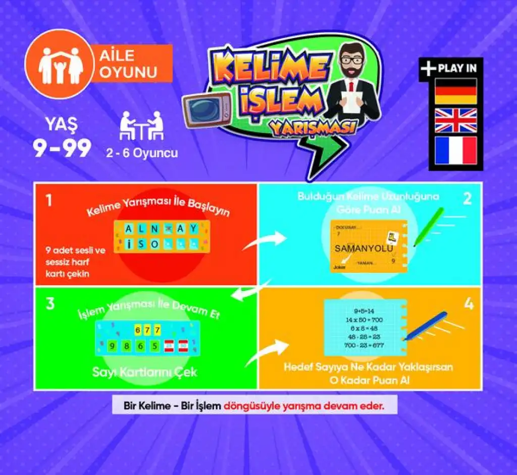 Yaş bilgisine dikkat ediniz! Aynı oyunun 6-10 yaş arasındaki çocuklar için 'Kelime İşlem Yarışması JUNIOR Aile Oyunu' adlı versiyonu vardır.