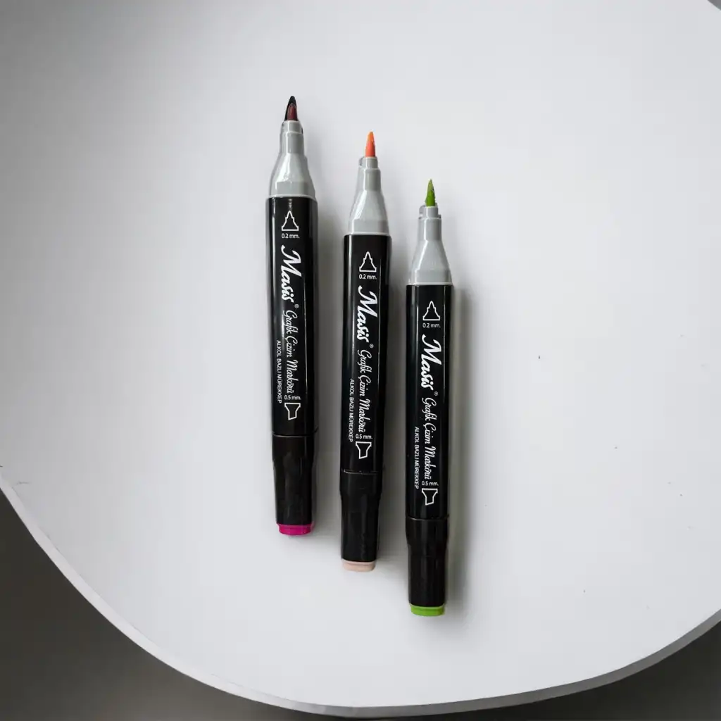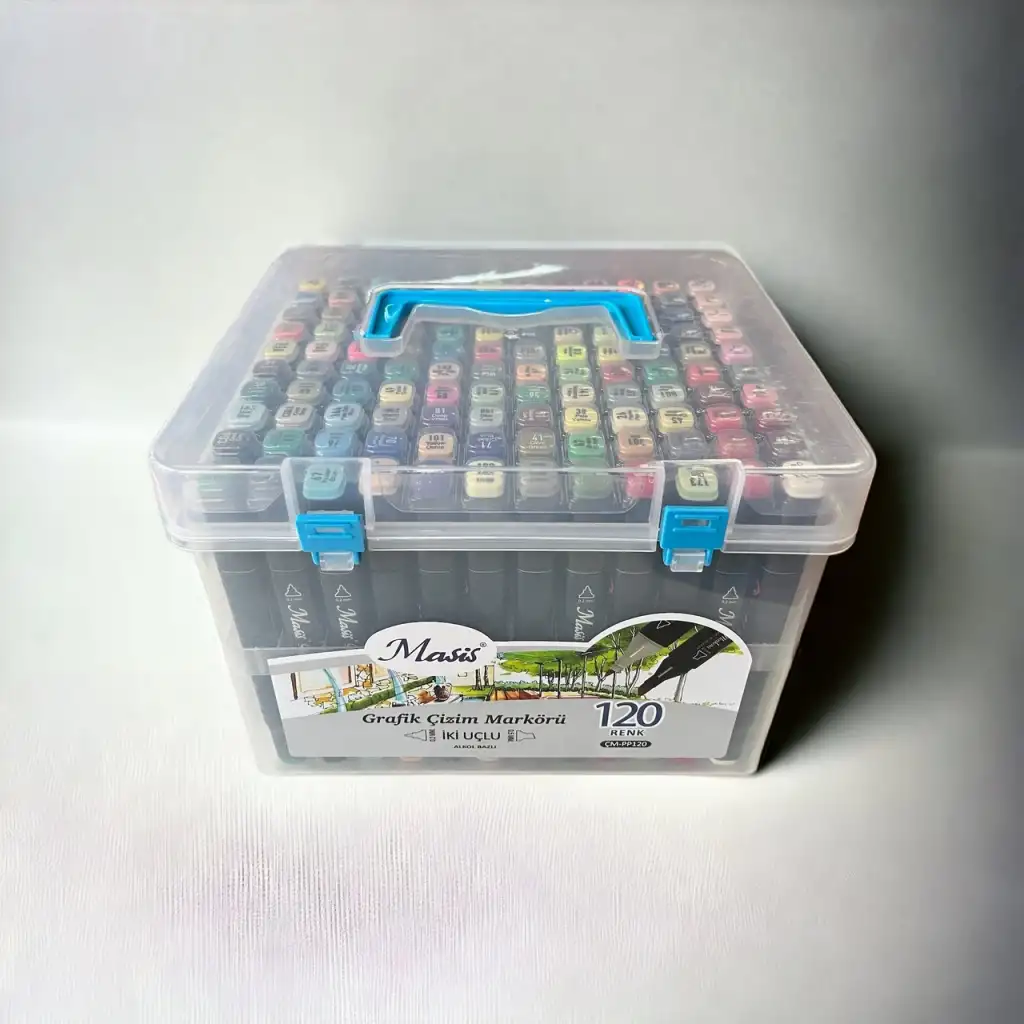 Masis Grafik Çizim Markörü, İki Uçlu, 120 Renk Şeffaf PP ÇM-PP120 Masis Twin Grafik Marker Kalem Her yaştaki bireyler için tasarlanan ergonomik yapısıyla kolay kullanım sağlar. Parlak ve canlı görünüm verir. Boyamalarınızı güvenle yapabileceğiniz bir materyaldir. Yüksek kaliteli alkol bazlı mürekkebe sahiptir. Bir tarafı kesik uçlu, bir tarafı yumuşak uçludur. 2mm’lik ince ve yuvarlak ucu detaylar için, diğer tarafındaki 5 mm’lik kesik uç ise hızlı yapılan boyamalar için idealdir. İllüstrasyon, endüstriyel tasarım, mimarlık ve moda tasarım alanları için kullanıma uygundur. Masis Marker’lar sketch ve taslak için uygun profesyonel materyaldir. İz bırakmaz, kalıcılık sağlar ve kâğıt üzerinde hızlı kuruma özelliğine sahiptir
