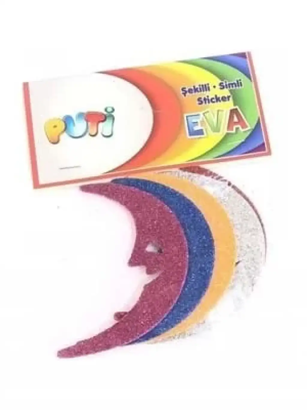 Puti Şekilli Simli Sticker Eva (Yapışkanlı) Ay (7 cm * 2.5 cm)