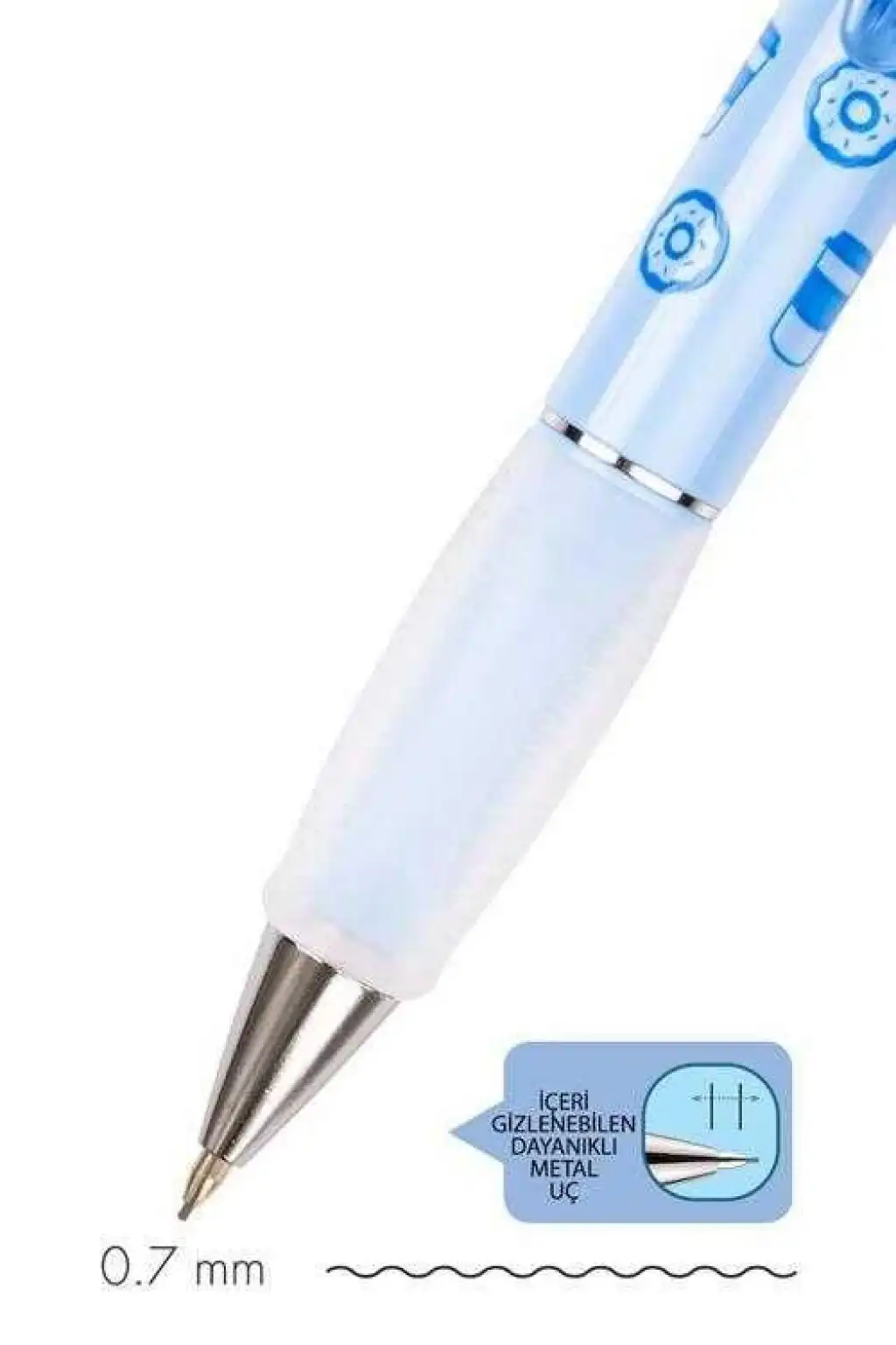 Geniş gövde tasarımlı, yüksek kaliteli mekanik kurşun kalem, tatlı teması desenli pastel renkleriyle
