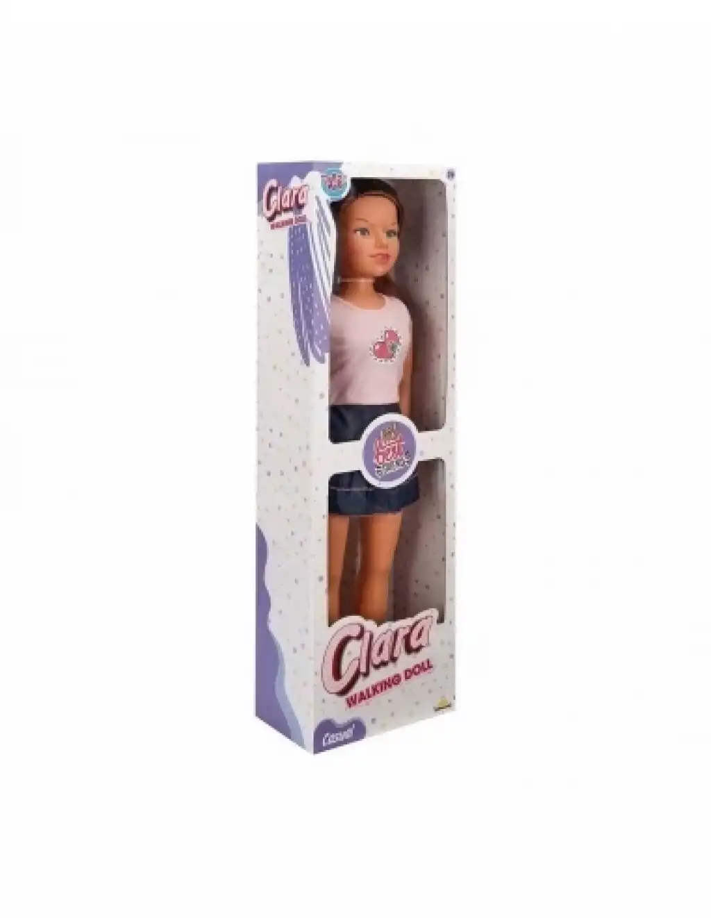 80cm uzunluğundaki Clara; açık pembe ayakkabı, kalp baskılı bir bluz ve kot etek giyerek tarzına gündelik bir hava katıyor. Tepede toplanmış bir tutam saçı, uzun kahverengi saçlarına modern bir görünüm sağlıyor. Üstelik Clara bebek ayakları üzerinde durabiliyor!